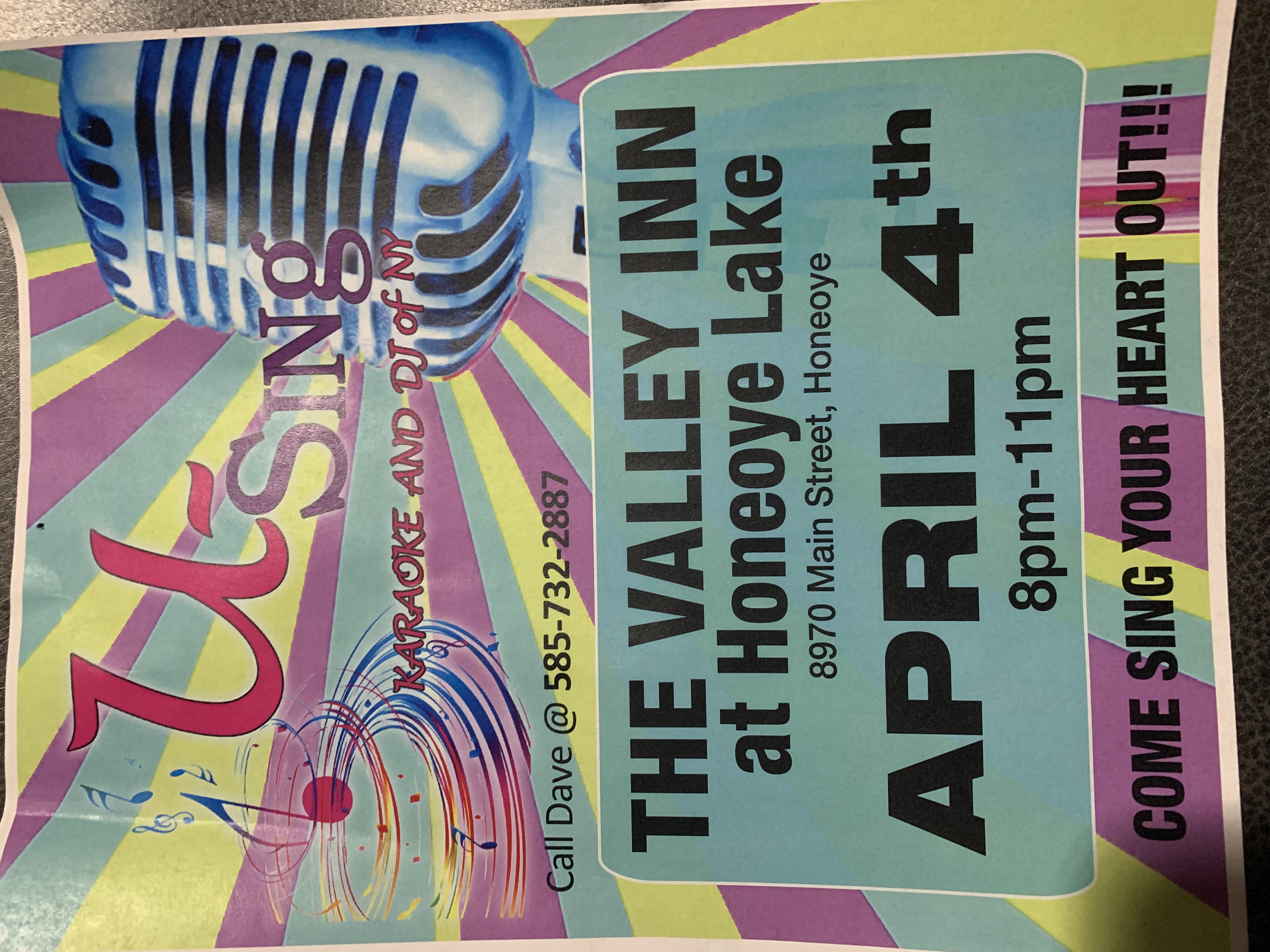 📍 8970 Main Street, Honeoye 📅 Saturday, April 4th ⏰ 8PM–11PM Come sing your heart out, cheer on your friends, and enjoy a fun night out! 🎶🍻