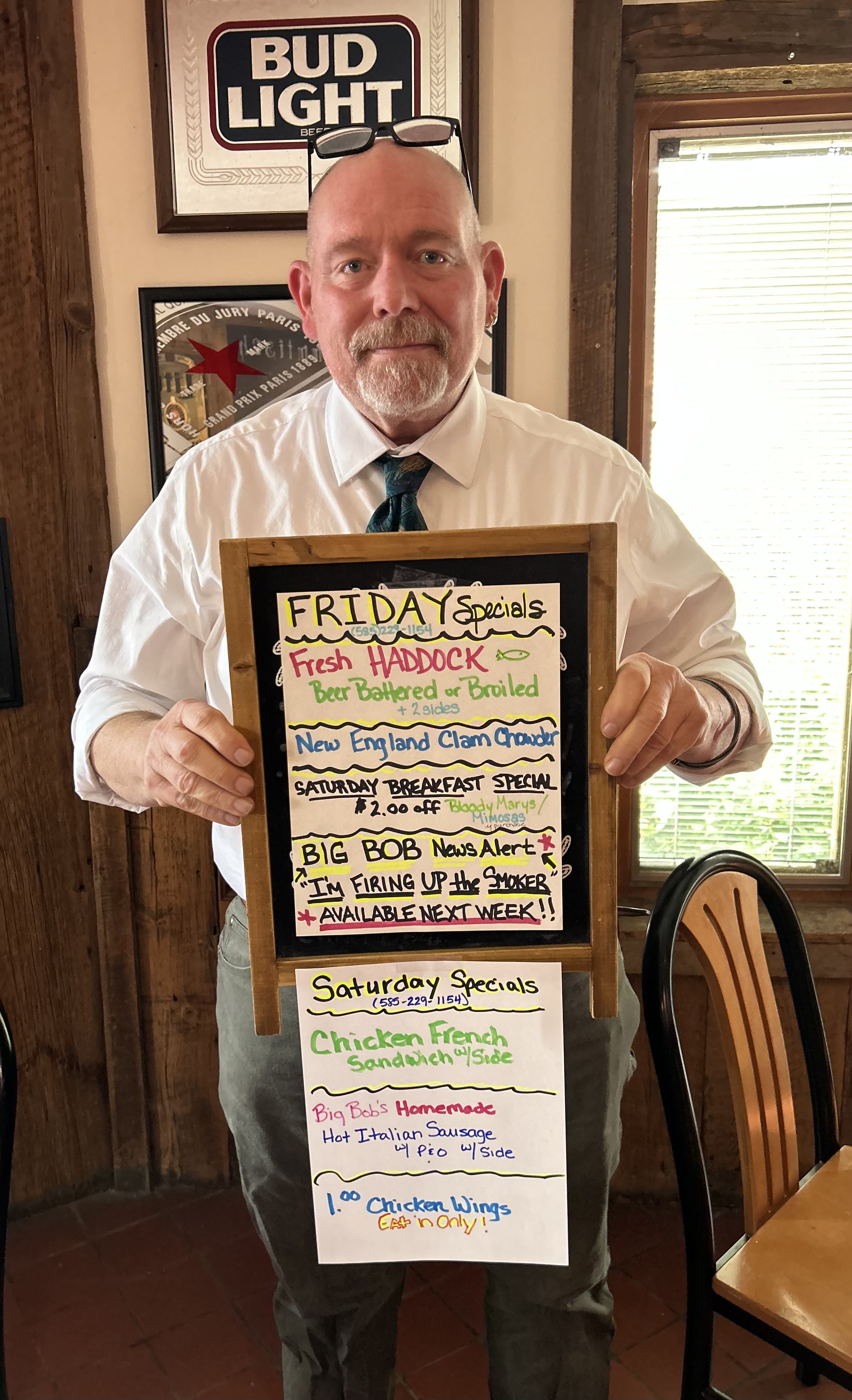 🐟 Friday Specials • Fresh Haddock – beer battered or broiled, served with 2 sides • New England Clam Chowder 🍳 Saturday Morning • Breakfast Special – $2 OFF Bloody Marys & Mimosas 🚨 Big Bob News Alert 🚨 The smoker is firing up… BBQ is coming NEXT WEEK 👀🔥 🍽️ Saturday Specials • Chicken French Sandwich w/ side • Big Bob’s Homemade Hot Italian Sausage w/ side • $1 Chicken Wings (Eat-in only!) Grab your friends, bring your appetite, and we’ll take care of the rest. See you this weekend! 🍻